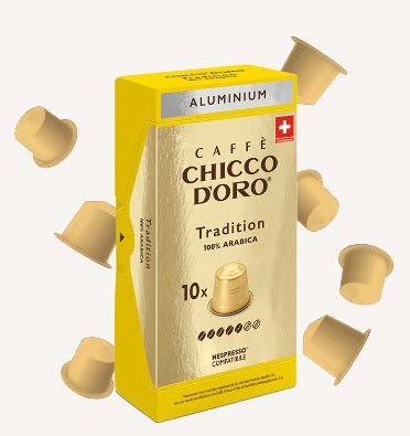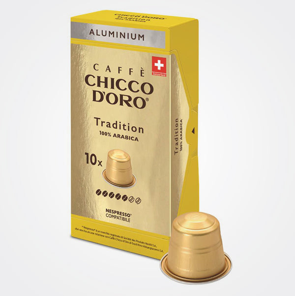 Kompatibel mit dem Nespresso ®*-System. In dieser Mischung aus 100 % Arabica-Kaffee höchster Qualität kommt die Tradition voll zum Ausdruck. Die feine Röstung verleiht ein zartes und angenehmes Aroma mit anhaltendem Nachgeschmack. Eine Spezialität für Kenner, die den ganzen Tag über genossen werden kann. 10 Einzeldosis-Kapseln gerösteter und gemahlener Kaffee. Unter Schutzatmosphäre verpackt. Vertrieben von Caffè Chicco d'Oro. Verpackt in der Schweiz