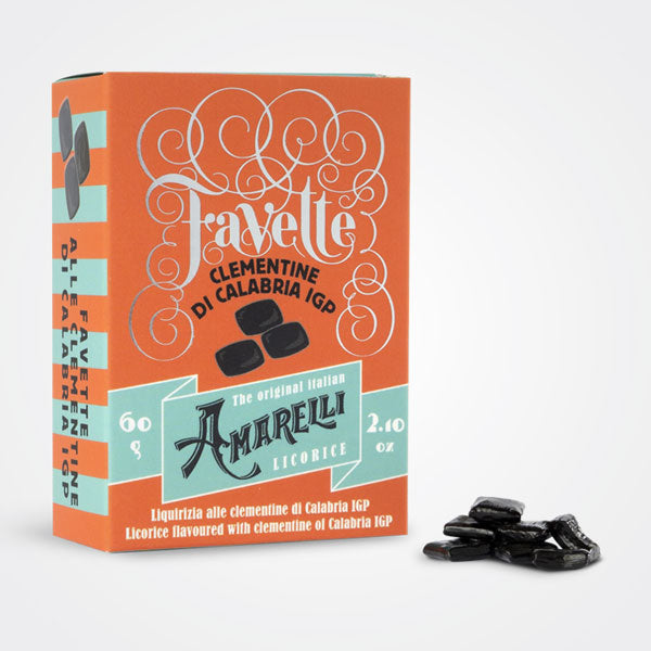 Nuovo formato da 60 gr, piccolo , pratico e sempre glamour. Una selezione raffinata per gustare la liquirizia in tutte le sue sfumature. L’astuccio contiene Favette al gusto di Clementine tagliata in piccoli rettangoli, aromatizzata con un fresco sentore di menta naturale
