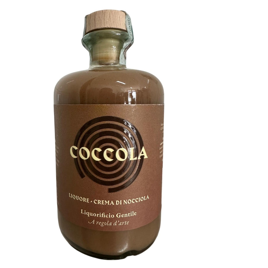 La bottiglia di liquore “Coccola” racchiude una deliziosa crema di nocciola prodotta dal Liquorificio Gentile. Con un elegante design in vetro e tappo in legno, presenta un’etichetta raffinata che racconta la tradizione artigianale italiana. Il liquore ha una gradazione alcolica del 17% e un formato da 50 cl, perfetto per momenti di puro piacere e convivialità.