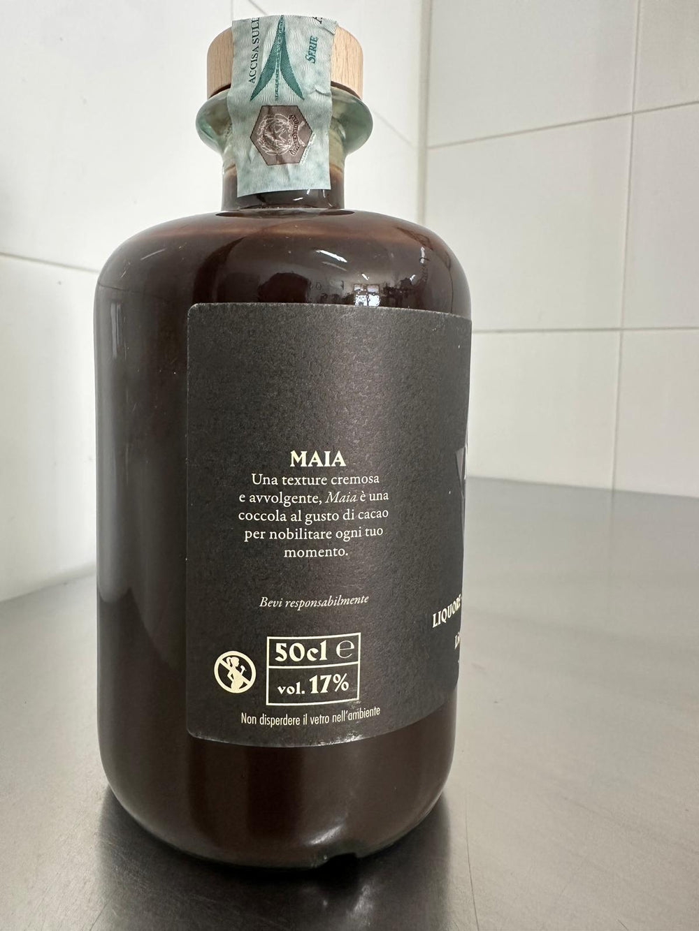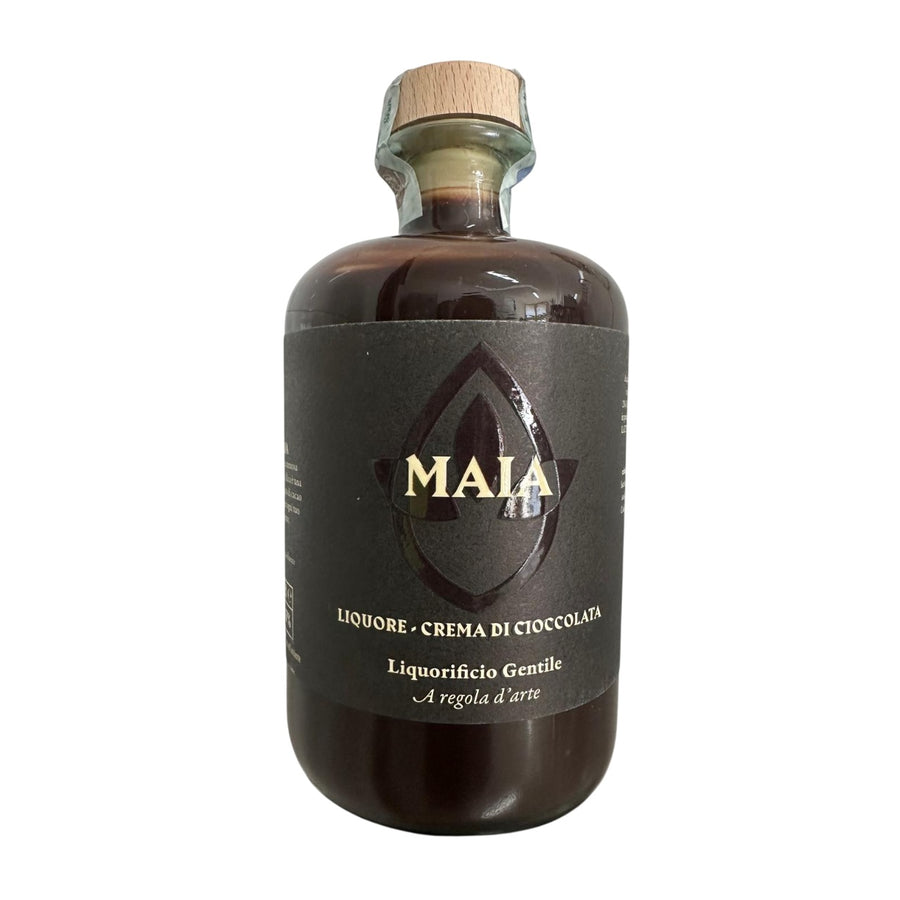 “Maia” è il liquore crema di cioccolata firmato Liquorificio Gentile, racchiuso in una bottiglia di vetro dal design sofisticato con tappo in legno. La sua etichetta scura richiama la ricchezza e l’intensità del cioccolato, offrendo un’esperienza di gusto avvolgente e autentica, frutto di una tradizione artigianale tramandata con passione. Il liquore ha una gradazione alcolica del 17% e un formato da 50 cl.